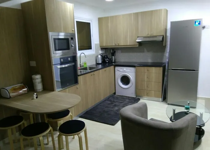 Das Luxury Studio Ayia Napa Center ist mit einer kompletten Küche ausgestattet, die einen Wasserkocher, einen Kühlschrank und einen Herd enthält, um Ihren Komfort zu gewährleisten. Diese Unterkunft ist in unmittelbarer Nähe zu der nächstgelegenen Bushaltestelle 102 Nisi Avenue 7.